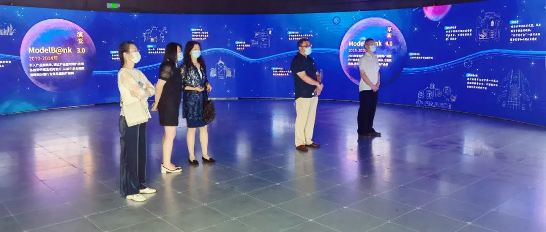 神州信息金融科技创新中心坐落于国家级金融科技示范区核心区的起步楼宇——新动力金融科技中心,拥有业内领先的360°环幕数字沉浸体验厅。创新中心展示了BB贝博艾弗森以国家计算机事业发展为成立初心的“蓝色血统”与历史沿革,神州信息从IT到DT的辉煌历程,到目前围绕场景金融、金融信创、数据智能、云原生数字化安全底座等重点业务的布局、成果与前瞻,呈现出了企业以金融科技创新共建美好数字中国的责任与担当。数字沉浸厅环形屏幕呈现的《未来银行架构ModelB@nk1.0-5.0的演进》向参观者展示了神州信息伴随中国银行业40余年的科技创新发展历程,给参观者带来了身临其境的视觉氛围体验。