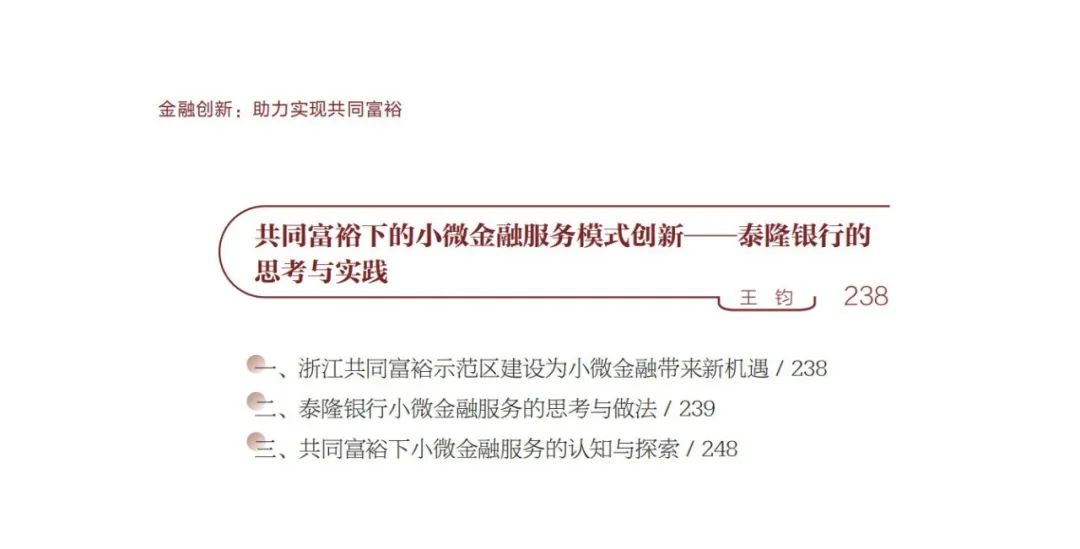 2.理论与实践结合,角度全面,囊括监管者、学者、从业者,从不同主体出发解读金融创新与共同富裕的关系。
