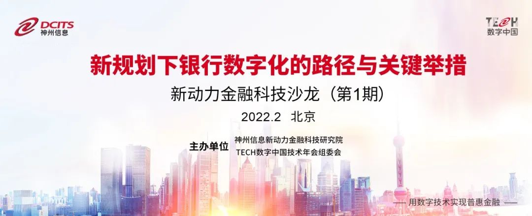 为更好研讨新的规划下银行业数字化转型的路径和关键举措,2022年2月26日,由神州信息新动力金融科技研究院和TECH数字中国技术年会组委会联合举办的第一期新动力金融科技沙龙在金融科技创新中心召开。沙龙邀请了金融业务专家、研究领域专家、咨询机构专家等参观金融科技创新中心展厅,并就银行数字化转型的需求、痛点、路径、举措等内容分享讨论。敞开胸怀广邀伙伴,就当前及未来热点的、关键的、棘手的、擅长的专业话题进行分享,碰撞更多新颖观点,发掘更多理念共识,找到更多难点突破,更多沙龙精彩分享值得期待。