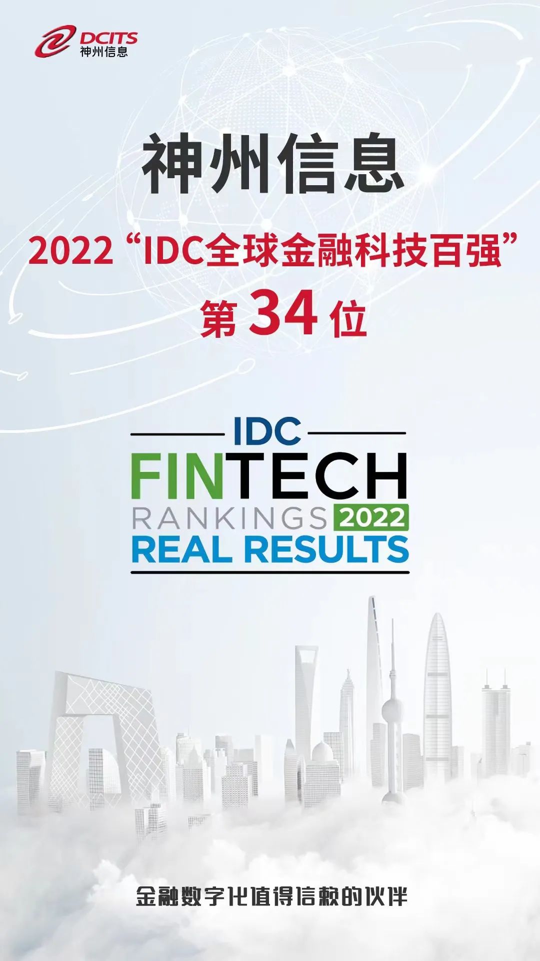 2022 IDC全球FinTech Rankings(金融科技排行榜)系列榜单及奖项于北京时间9月13日正式揭晓,作为领先的金融科技企业,神州信息再次上榜,排名34位。
