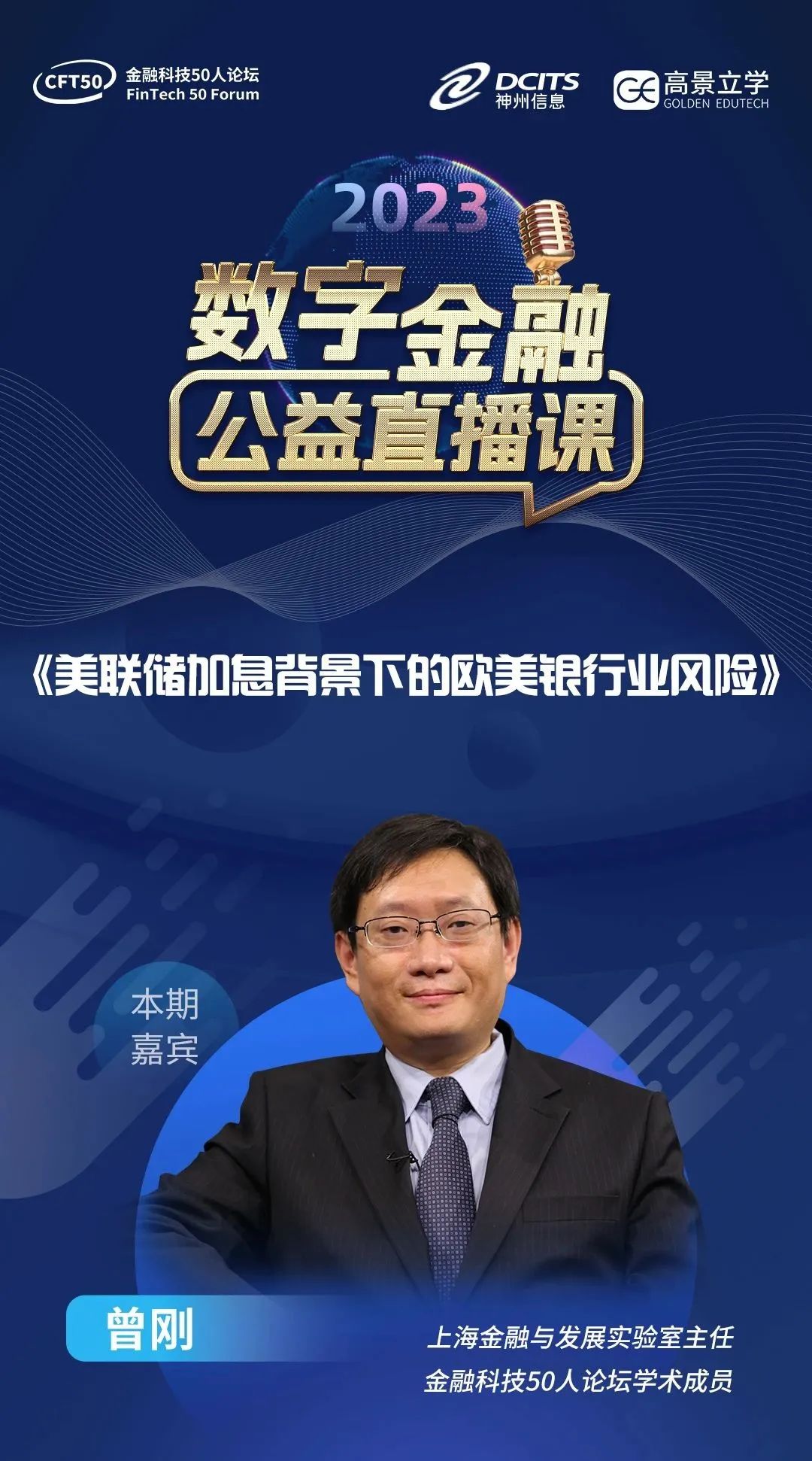导读:由金融科技50人论坛联合神州信息、高景立学共同推出的重磅系列课程“2023数字金融公益直播课”迎来第三期嘉宾——上海金融与发展实验室主任、金融科技50人论坛学术成员曾刚。5月8日晚上19:00-20:00,与您一起聚焦“美联储加息背景下的欧美银行业风险”。欢迎视频号,上课不迟到。